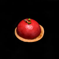 Pâte sucrée, crème passion allégée, meringue italienne, insert framboise, framboises fraîches.